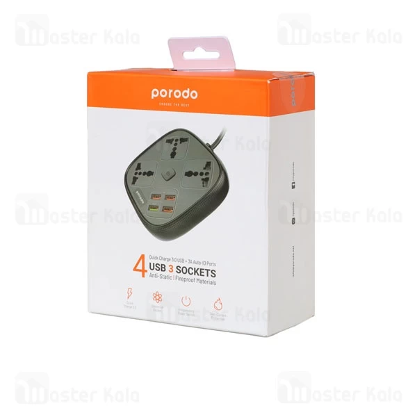 چند راهی برق و شارژر پرودو Porodo 4 USB 3 Sockets PD-SC3302 دارای 4 پورت