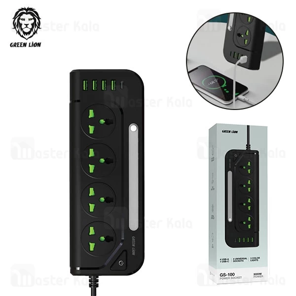 چند راهی برق و شارژر گرین لاین Green Lion GS-100 GNGS100PSBK