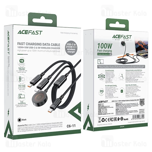 کابل دو سر Type-C و شارژر اپل واچ ایس فست ACEFAST C6-11 طول 1.2 متر توان 100 وات