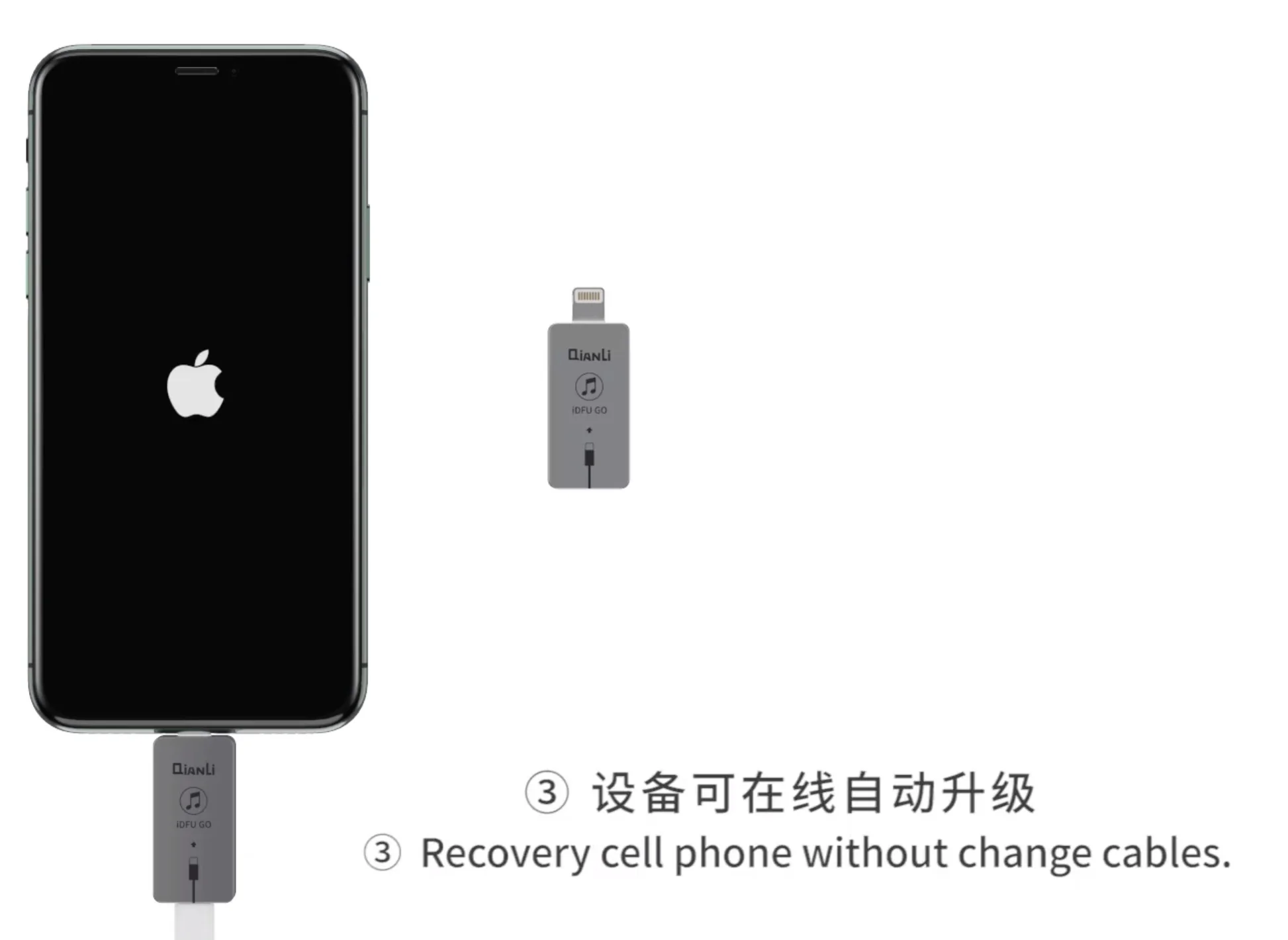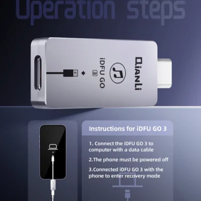 کابل IDFU Go 3 یکی از ابزارهای تعمیرات موبایل است که برای بردن گوشیهای آیفون به حالت DFU مورد استفاده قرار می گیرد. هنگامی که یکی از دکمه های پاور یا ولوم عمل نکند امکان ورود به حالت ریکاوری عملا غیرممکن خواهد بود در این مواقع بهترین و آسانترین راه استفاده از کابل IDFU Go 3 می باشد که به پورت گوشی وصل می شود و گوشی را به حالت Dfu می برد.