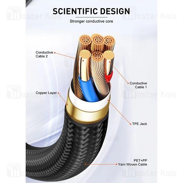 این کابل با استفاده از مواد اولیه باکیفیت مانند سیمهای مسی ضخیم و روکش مقاوم در برابر کشش و گرهخوردگی ساخته شده است. همین ویژگی باعث میشود دوام این کابل در استفادههای روزمره بسیار بالا باشد و به راحتی دچار پارگی یا آسیب نشود. همچنین، طول مناسب و استاندارد کابل (که معمولا یک متر است) به کاربران این امکان را میدهد تا هنگام استفاده از آن، آزادی عمل بیشتری داشته باشند.