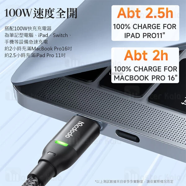 برای مشخص شدن وضعیت شارژ گوشی می توانید از نشانگر LED که در سر کانکتور کابل Mcdodo CA-2730 قرار دارد استفاده کنید. این نشانگر فقط زمان وصل بودن جریان را نشان می دهد و در صورت قطع شدن جریان بعد از 1 دقیقه خاموش می شود.