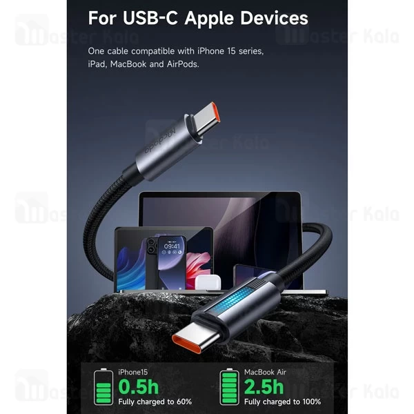 کابل آیفون 15 مک دودو CA-574 دارای هسته مسی ضخیم با چند رشته بوده و با پشتیبانی از قابلیت فست شارژ حداکثر توان عبوری 100 وات، انتخاب مناسبی برای کسانی است که بخواهند شارژ سریع داشته باشند. همچنین کابل Type-C به Type-C مک دودو CA-574 مجهز به تکنولوژی شارژ سریع PPS و PD است. در نتیجه به کمک این کابل شما به سادگی میتوانید گوشی خود با توان تا 100 وات را بالاترین سرعت ممکن شارژ کنید. همچنین نوع درگاه Type-c این کابل با گوشی آیفون سری 15 و 16 سازگاری داشته و میتوانید به کمک آن این گوشی را ظرف نیم ساعت 60 درصد شارژ کنید. به کمک کابل دو سر Type-c مک دودو CA-574 میتوانید مک بوک خود را تنها ظرف 2.5 ساعت به طول کامل شارژ کنید. همچنین به دلیل برخورداری از توان 60 وات به بالا، میتوانید از این کابلها نیز برای شارژ لپ تاپ خود استفاده کنید. البته رسیدن به توان بالای شارژ، به شارژری که از آن استفاده می کنید و مدل گوشی شما هم بستگی دارد. پیشنهاد ما برای شما این است که از شارژرهای برند مک دودو، الدینیو و یا دیگر شارژهای با توان بالا که در مدلهای متنوعی درسایت مستر کالا موجود است، استفاده کنید تا بتوانید از بالاترین سرعت و ایمنترین شارژ لذت ببرید. همچنین شما به کمک این کابل میتوانید اطلاعات را با سرعت 480 مگابیت بر ثانیه منتقل کنید.