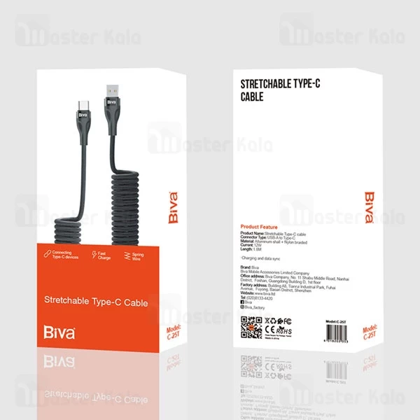 کابل Type-C فنری بیوا Biva C-25T Stretchable توان 12 وات