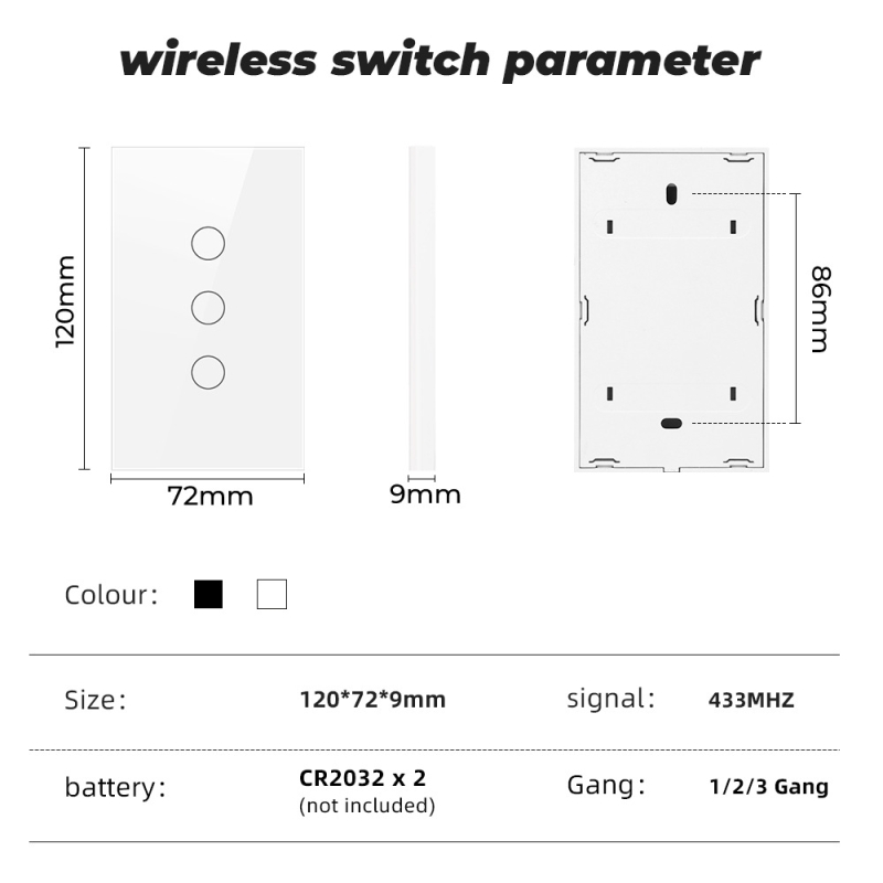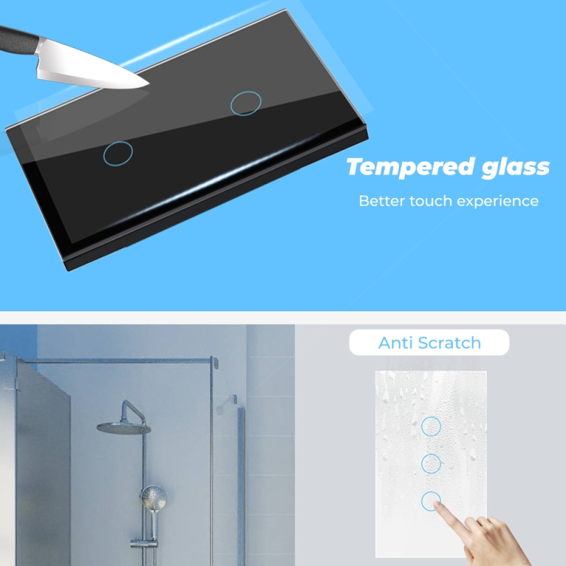 The 433 MHz radio frequency three-pole smart touch switch is a modern and intelligent solution for easy control of your home equipment. With its beautiful design and heated crystal surface, this switch is highly resistant to scratches, dust and moisture. You can also touch it with wet hands, as it has anti-electric shock properties. This switch offers stable and accurate performance.
