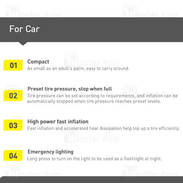 کمپرسور باد بیسوس Baseus Super Mini Inflator Pump CRCQ000001 دارای چراغ LED