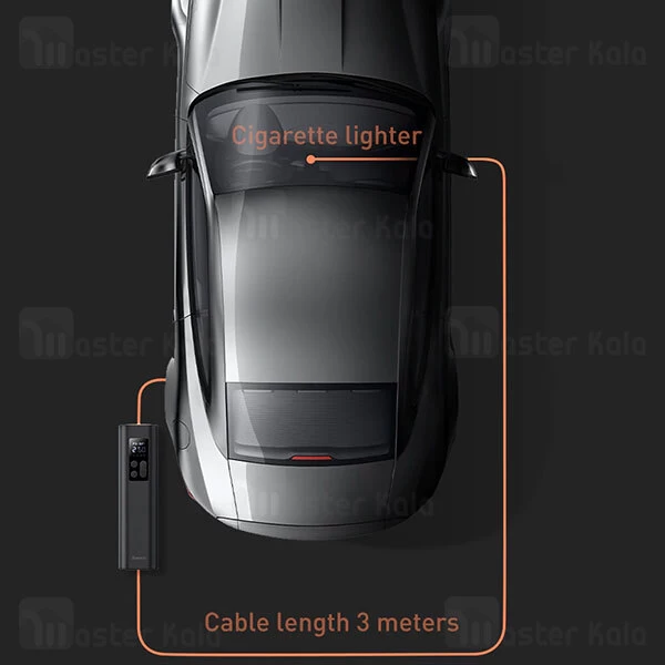 یکی از مشکلات رایج در پمپهای دستی یا فندکی، کوتاهی سیم است. بیسوس این مشکل را با ارائه یک کابل برق 3 متری حل کرده است. این طول زیاد، امکان دسترسی آسان به هر چهار لاستیک خودرو را بدون نیاز به جابجایی پمپ فراهم میکند. کاربر کمپرسور باد Baseus CRCQ000001 میتواند بهراحتی پمپ را در قسمت جلو قرار دهد و تمام لاستیکها را بدون هیچ محدودیتی باد کند.