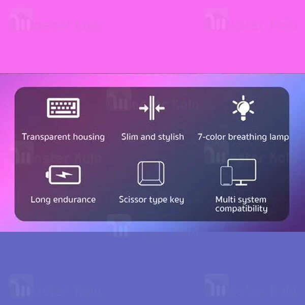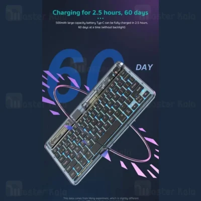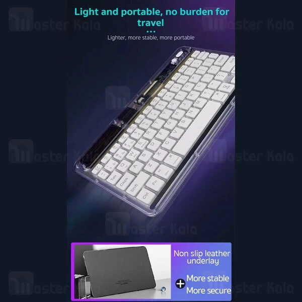 کیبورد بلوتوثی Coteetci 84008 به صورت شفاف (Transparent) طراحی شده و دارای 7 حالت نور پس زمینه می باشد.