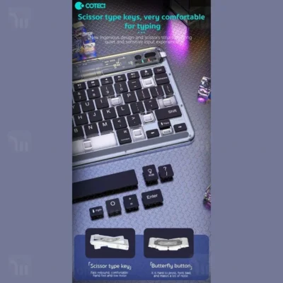 کیبورد بلوتوثی Coteetci 84008 یکی از تولیدات شرکت Coteetci است که به دلیل بی سیم بودن کارای بهتری نسبت به محصولات مشابه سیم دار داشته و شما را در هنگام استفاده اذیت نکرده و میز شما را نیز شلوغ نخواهد شد. کیبورد یکی از لوازم اصلی کامپیوترهای شخصی محسوب میشوند؛ لذا افرادی که به طور روزانه و مرتب با این ابزار کار میکنند میدانند که داشتن کیبورد خوب چقدر بر کیفیت کارشان تاثیرگذار خواهد بود.