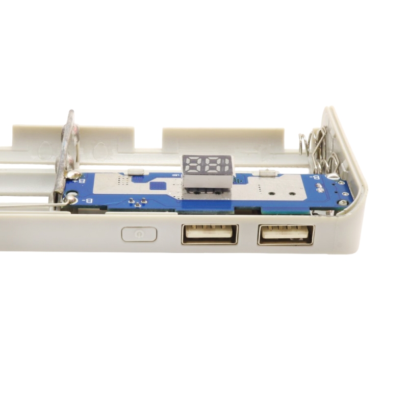 این یک کیس پاوربانک DIY است که برای کاربران حرفهای و علاقهمندان به الکترونیک طراحی شده تا با نصب 5 عدد باتری 3.7 ولت از نوع 18650 سرتخت ، یک پاوربانک با ظرفیت قابل توجه بسازند. این کیس شامل یک برد هوشمند با نمایشگر دیجیتال برای نمایش میزان شارژ، کنترل ولتاژ، و محافظت در برابر ولتاژ بیش از حد، جریان بیش از حد و اتصال کوتاه میباشد. برد داخلی دارای دو خروجی USB با ولتاژ 5 ولت است که یکی جریان 2.1 آمپر و دیگری 1 آمپر را تأمین میکند، و مناسب برای شارژ انواع گوشی، تبلت، دستگاههای IoT و ابزارهای همراه است. همچنین یک چراغ LED و کلید فشاری برای روشن/خاموش کردن یا نمایش درصد باتری نیز روی برد تعبیه شده است. این کیس فاقد باتری داخلی است و کاربران باید باتریها را بهصورت جداگانه تهیه و نصب نمایند. طراحی ماژولار و قابل تعویض باتریها، این پاوربانک را به گزینهای قابل اعتماد برای کاربران تبدیل کرده است.