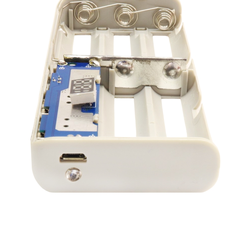 دارای قابلیت اتصال 5 عدد باتری لیتیم یون 3.7 ولت سایز 18650، به همراه برد پاوربانک و نمایشگر دارای دو خروجی 5V.2.1A و 5V.1A