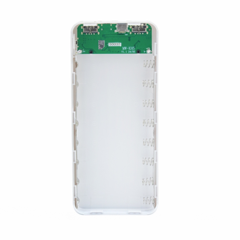 دارای قابلیت اتصال 8 عدد باتری لیتیوم یون 3.7 ولت ، به همراه برد پاوربانک و نمایشگر با سه ورودی Lightning و Micro ، Type-C و دو خروجی USB