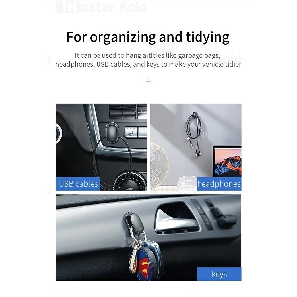 دیگه مشکل جمع آوری کابل ها ، کلید ها ، پاکت ها و … از داخل اتومبیل و منزل بر طرف شد این را مدیون کمپانی بیسوس می باشیم که دست به ساخت محصولی به نام Small Shell Vehicle Hook زده است که قابل استفاده در اتومبیل و منزل می باشد.این محصول یک گیره می باشد که شما می توانید به راحتی تمامی وسله های خود را به آن آویز کنید تا هیچگونه فضایی را اشغال نکند و یا آسیبی به آن ها وارد نشود.