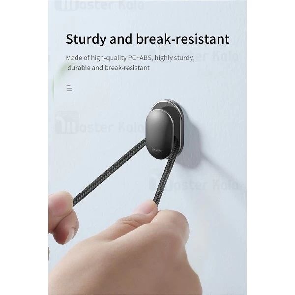 داخل پک این محصول 4 عدد از این گیره ها قرار دارد که می توانید آن ها را به وسیله چسبی که در پشت آن ها قرار دارد بر روی سطوح صاف بچسبانید.جنس بدنه این محصول از پلاستی + ABS و متریال PC بوده که مقاومت آن را در برابر ضربه و فشار بسیار بالا برده است.ابعاد این گیره بسیار کوچک بوده و همین امر باعث شده تا هیچگونه فضایی از اتومبیل و یا منزل شما را اشغال نکنند.شما می توانید به راحتی با استفاده از یکی از این گیره های در کنار میز کار خود کابل شارژ و یا هندزفری خود را جمع کنید تا هیچگونه آسیبی به آن وارد نشود.