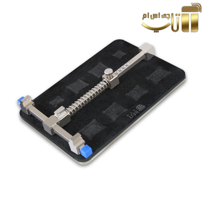 گیره برد BEST-001E – این هولدر برد ها اکثرا چند منظوره می باشند و چندین برد موبایل را پشتیبانی می کنند یا ممکن است تک منظوره باشند و صرفا برای استفاده در تعمیرات یک برد خاص استفاده شوند. فیکسچر برد ها جزو لوازم تعمیرات گوشی موبایل به حساب می آیند، که جنس های متفاوتی از برند های شرکت های متفاوتی دارند. ممکن است فلزی یا از پلاستیک فشرده مقاوم یا فولادی باشد که دارای گیره هایی متعدد جهت تنظیم و نگهداری انواع برد های موبایلی می باشد._x000D_