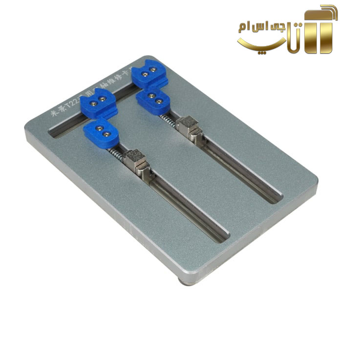 گیره برد Mijing t22 – این فیکسچر مناسب نگهداری انواع برد و آی سی گوشی های موبایل هنگام لحیم کاری و یا پاک کردن چسب آی سی و دیگر قطعات میباشد. گیره برد یونیورسال به شدت در برابر حرارت مقاوم است.این فیکسچر را می توان در فواصل مختلف سطح بالا متوسط و پایین تنظیم کرد، زیر قسمتی که برد قرار میگیرد آزاد می باشد تا حرارت در زیر برد فشرده نشود و به قطعات زیرین آسیبی نرساند.همچنین در قسمت اصلی فیکسجر دو پیچ برای فیکس شدن برد روی گیره قرار دارد.مدل T22 یونیورسال از برند MJ دارای دو محور متحرک عمودی می باشد.