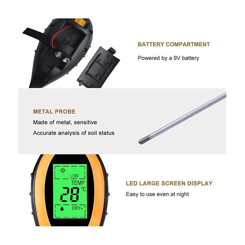 پی اچ متر 4 کاره خاک به منظور سنجش شاخصههای اساسی کیفیت خاک مورد استفاده قرار میگیرد و از ملزومات پرکاربرد در صنایع کشاورزی ،باغداری، و حتی گلخانههای خانگی میباشد. با استفاده از پی اچ متر 4 کاره خاک، میتوان پی اچ، دما، رطوبت و نور را سنجش کرد و جلوی هزینههای اضافی برای خرید تجهیزات جداگانه را گرفت.